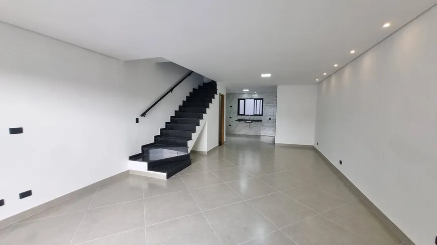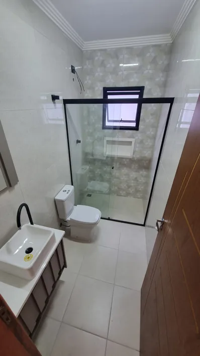 Novo, sala grande com cozinha americana e lavabo. Na parte superior possui 3 dormitórios sendo um suíte com sacada.